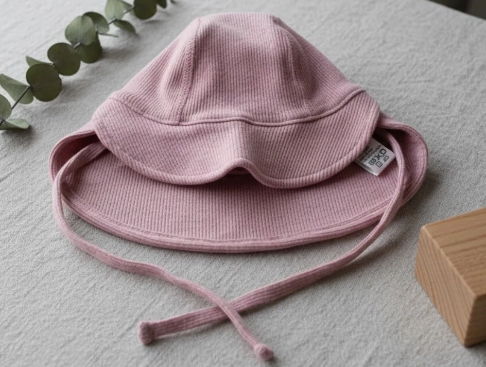 Solhat i farven rose melange med bindesnor fra Joha.