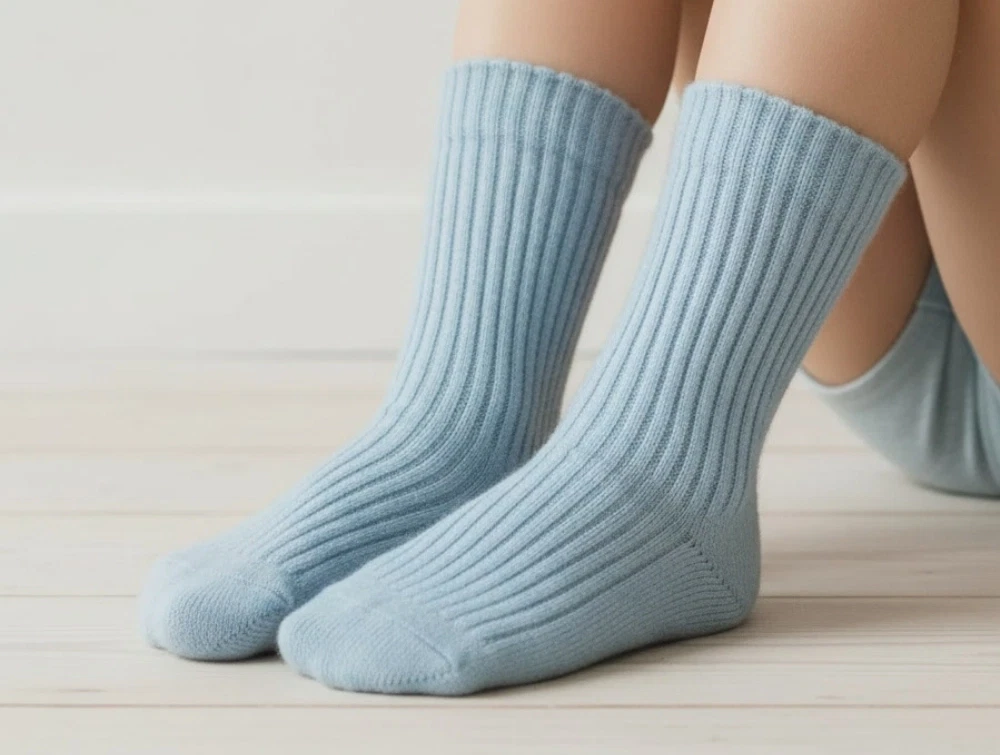 1 par relativt tykke lyseblå uldstrømper fra Joha.