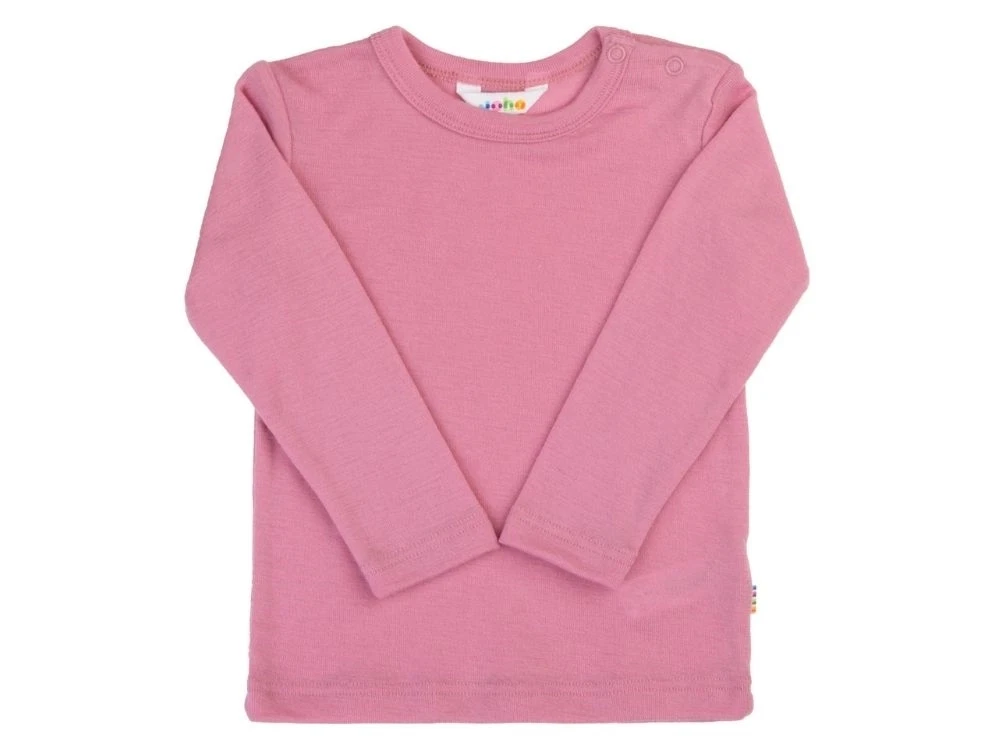 Joha uldbluse pink med lange ærmer set på sød pigeJoha uldbluse pink med lange ærmer