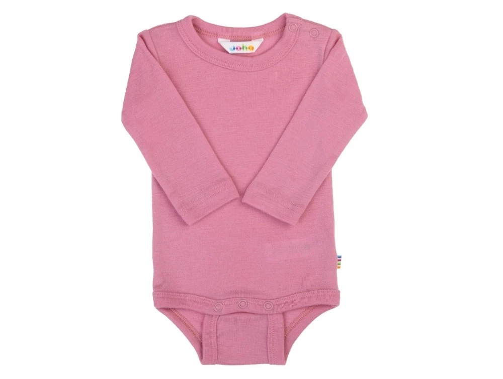 Body i pink nuance fra Joha i blød og let merinould. Denne uldkvalitet har god strækevne og føles behagelig mod huden. Modellen har lange ærmer og et enkelt, ensfarvet udtryk.