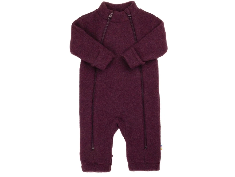 Ulddragt i blommefarvet nuance fra Joha fremstillet i 100% børstet merinould. Dragten har dobbelt lynlås foran, som gør den nem at tage af og på, samt vendbare fødder og hænder, der kan foldes ud eller ind efter behov.