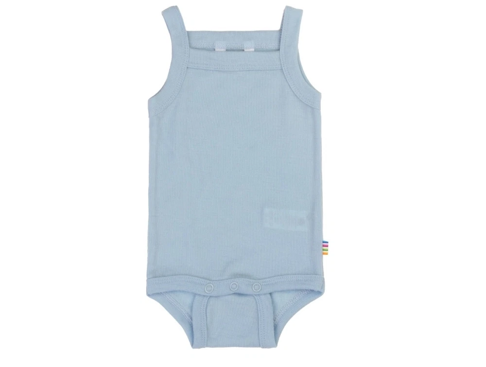 Sommerbody i blå nuance fra Joha i blød og let merinould. Den ribbede uldkvalitet har god strækevne og føles behagelig mod huden. Modellen er ensfarvet og har bredere skulderstropper, som giver en god og stabil pasform.