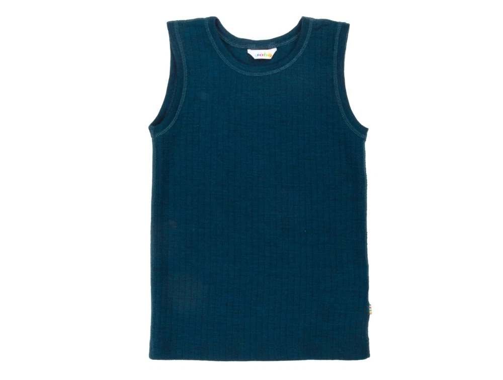 Undertrøje i mørk turkis nuance fra Joha fremstillet i 100% merinould. Modellen har klassisk pasform uden ærmer og er lavet i en blød og let uldkvalitet med lodret rillet mønster, som føles behagelig mod huden.