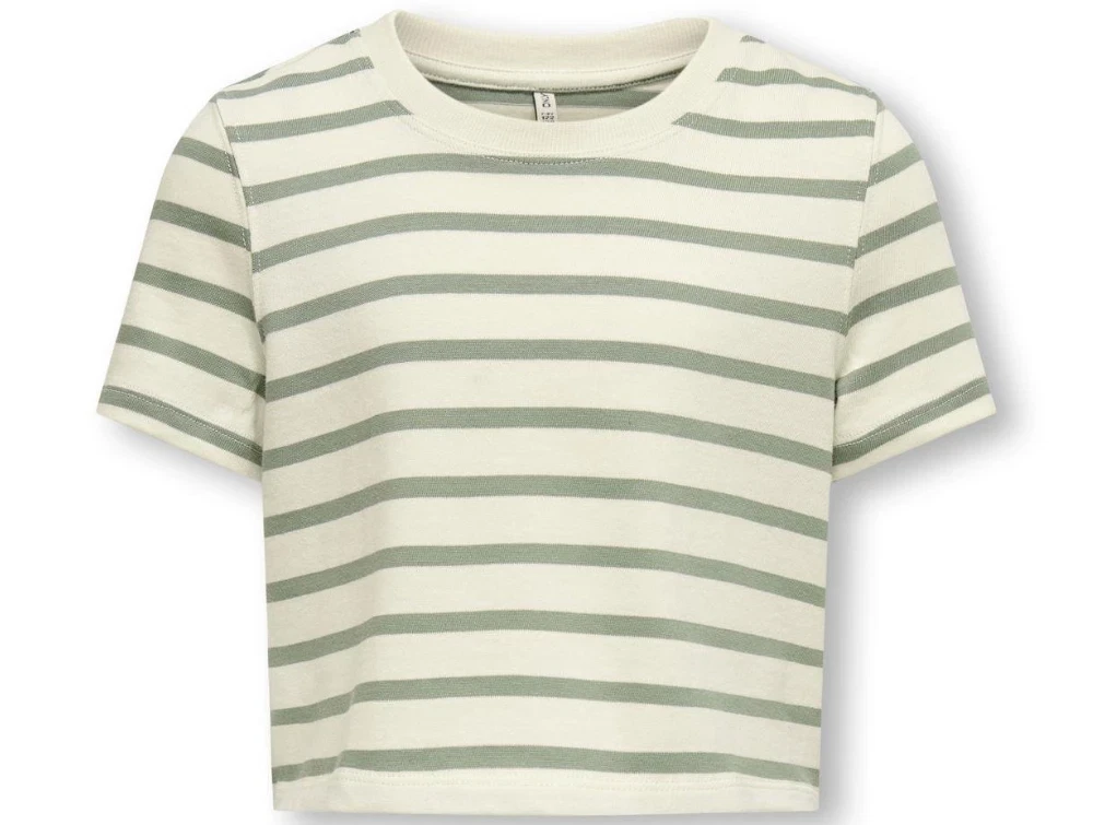 Cool stribet t-shirt top i farverne birch og hedge green fra Kids ONLY.