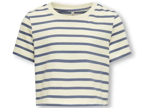 Cool stribet t-shirt fra Kids ONLY i farverne birch og vintage indigo.