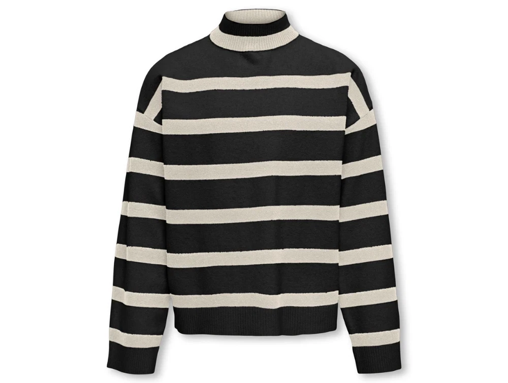 Mere information om Kids ONLY black/birch stribet loose højhalset strikbluse