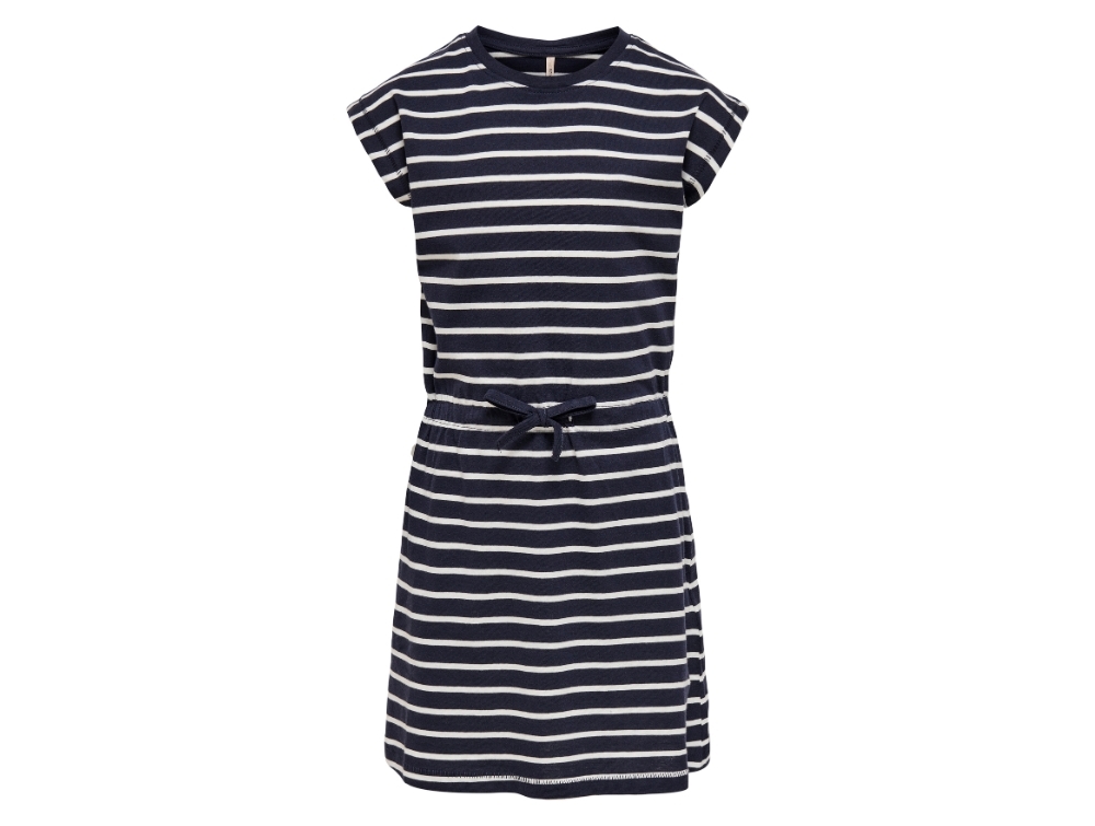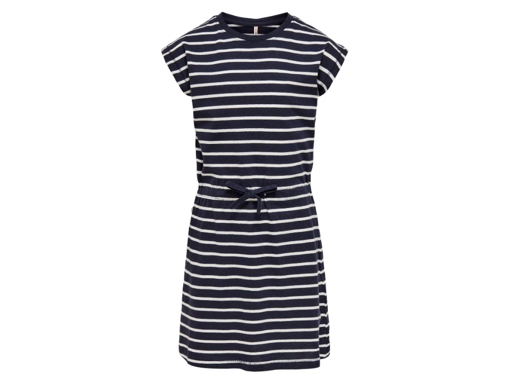 Stribet kjole med bindebånd i taljen i farverne sort og cloud dancer fra Kids ONLY.