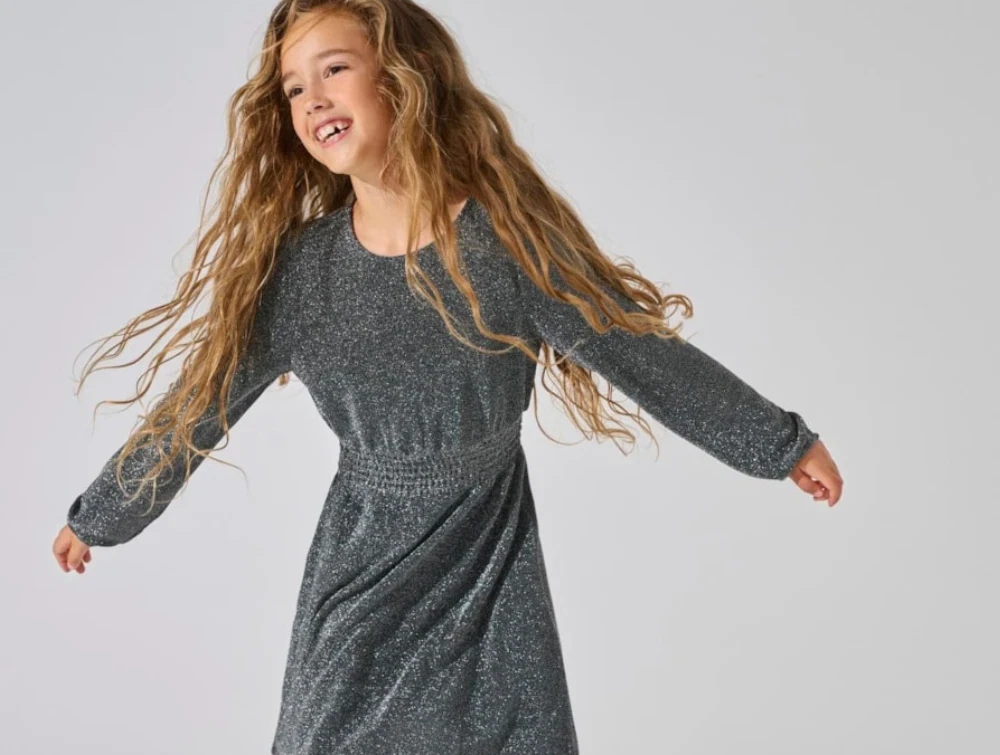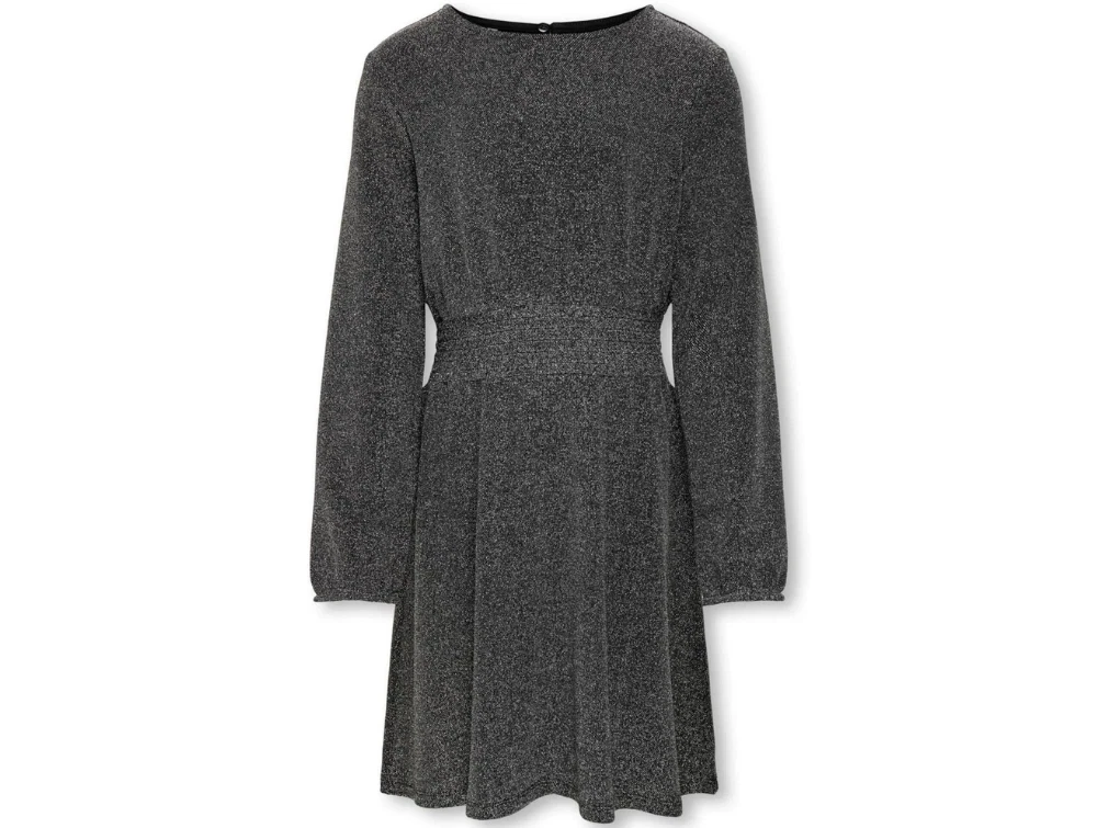 Skøn glitterkjole i sort med blød elastik i talje og ærmer fra Kids ONLY.