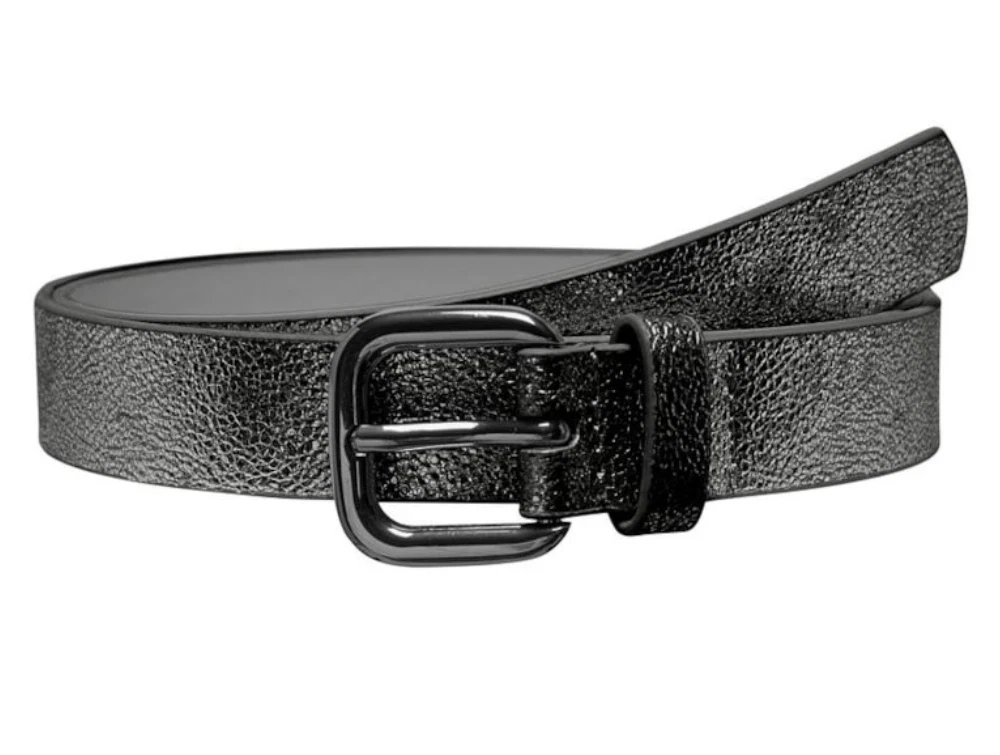 "Gunmetal buckle" refererer til et bæltespænde med en gunmetal-finish, hvilket betyder, at spænder har en mørk, metallisk farve, ofte en dyb grå eller sortgrå. Denne finish giver et råt, moderne og lidt industrielt udtryk, som passer godt til både casual og mere edgy styles.