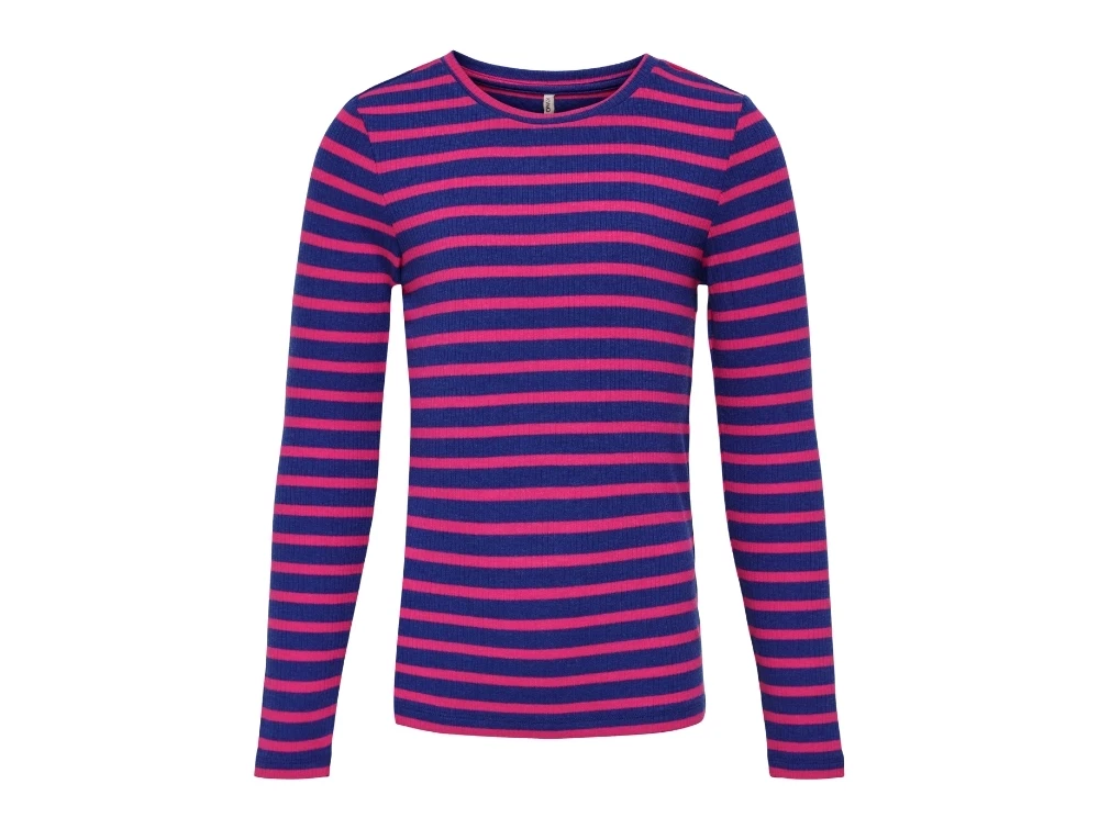 Stribet top i rib-kvalitet i farverne bluing og fuchsia purple fra Kids ONLY.
