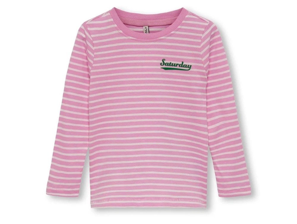Stribet top i farven bonbon med lille tekstprint fra Kids ONLY.