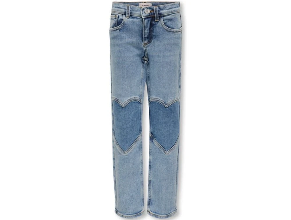 Kids ONLY brede jeans medium blue denim med hjerteknæKids ONLY brede jeans medium blue denim med hjerteknæ