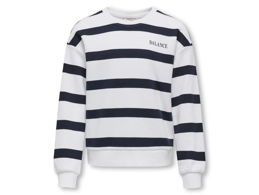 Bredstribet sweatshirt i farverne bright white og night sky med lille tekstprint fra Kids ONLY.