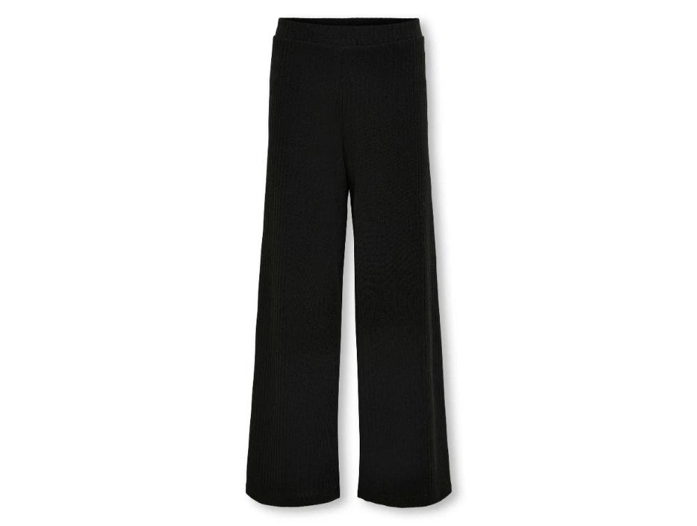 Kids ONLY sorte bukser med wide leg pasform på modelKids ONLY sorte bukser med wide leg pasform forfraKids ONLY sorte bukser med wide leg pasform detaljeKids ONLY sorte bukser med wide leg pasform bagfra