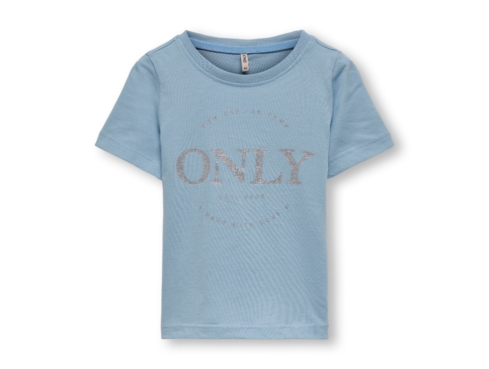 Top i farven cashmere blue med sølvfarvet print fra Kids ONLY.