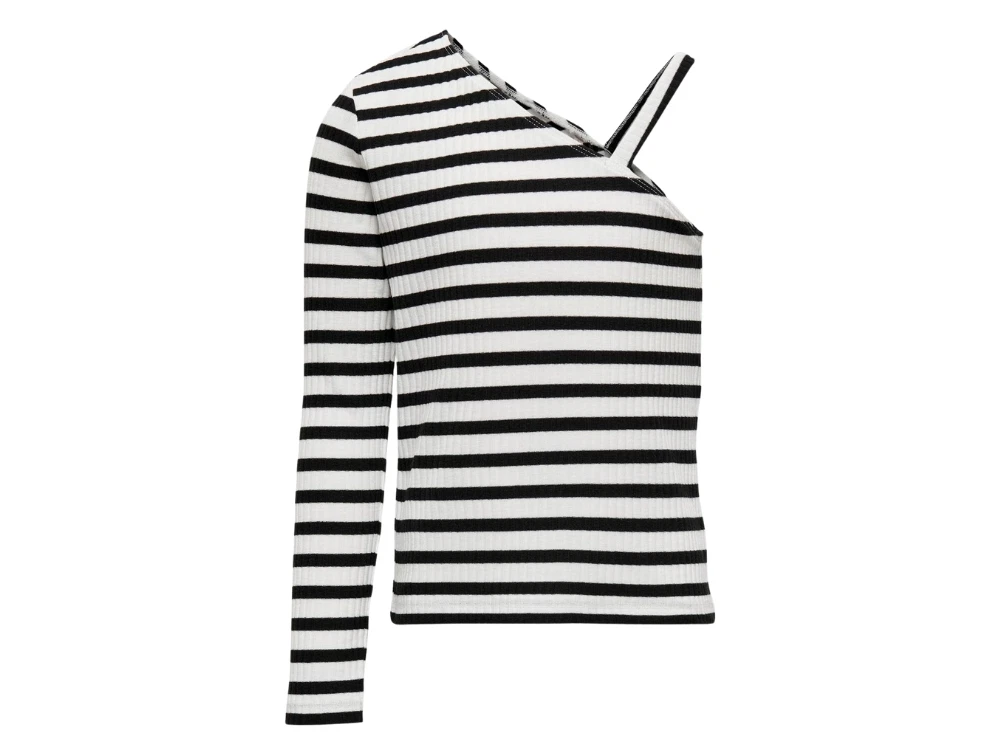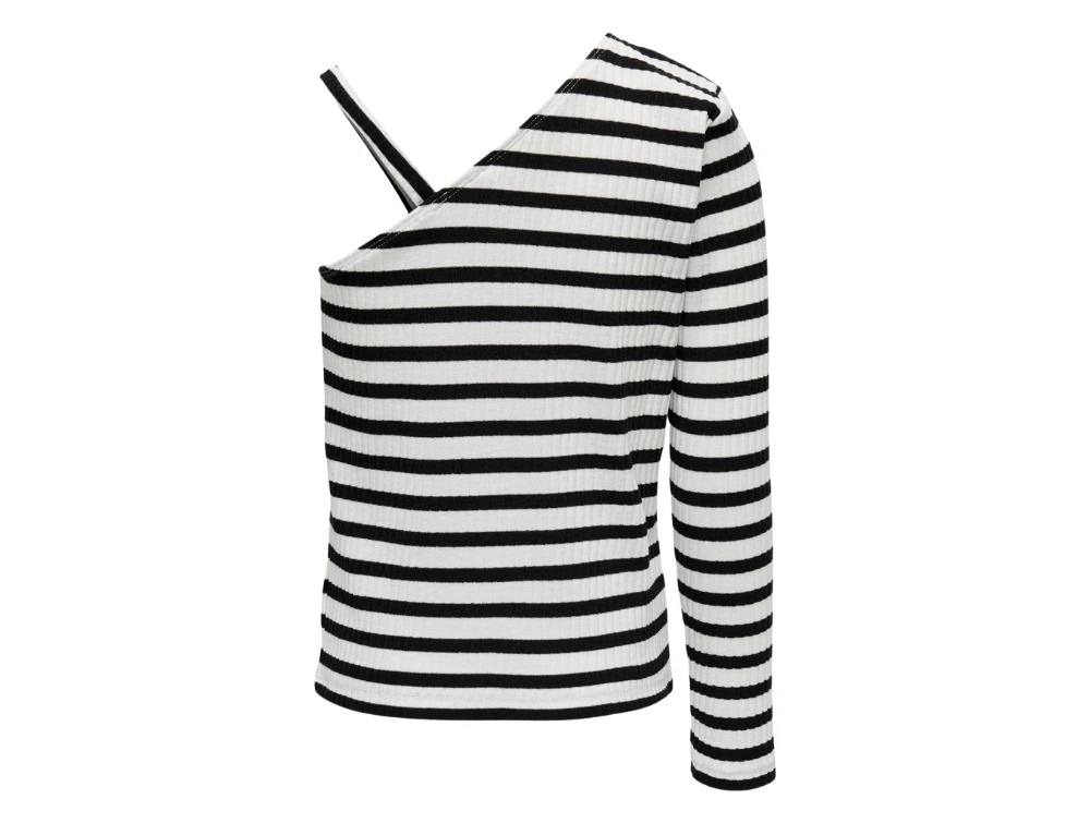 Skøn stribet one-shoulder top i ribkvalitet i farven cloud dancer med sorte striber fra Kids ONLY.