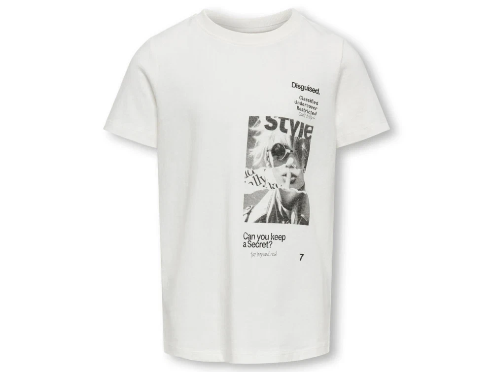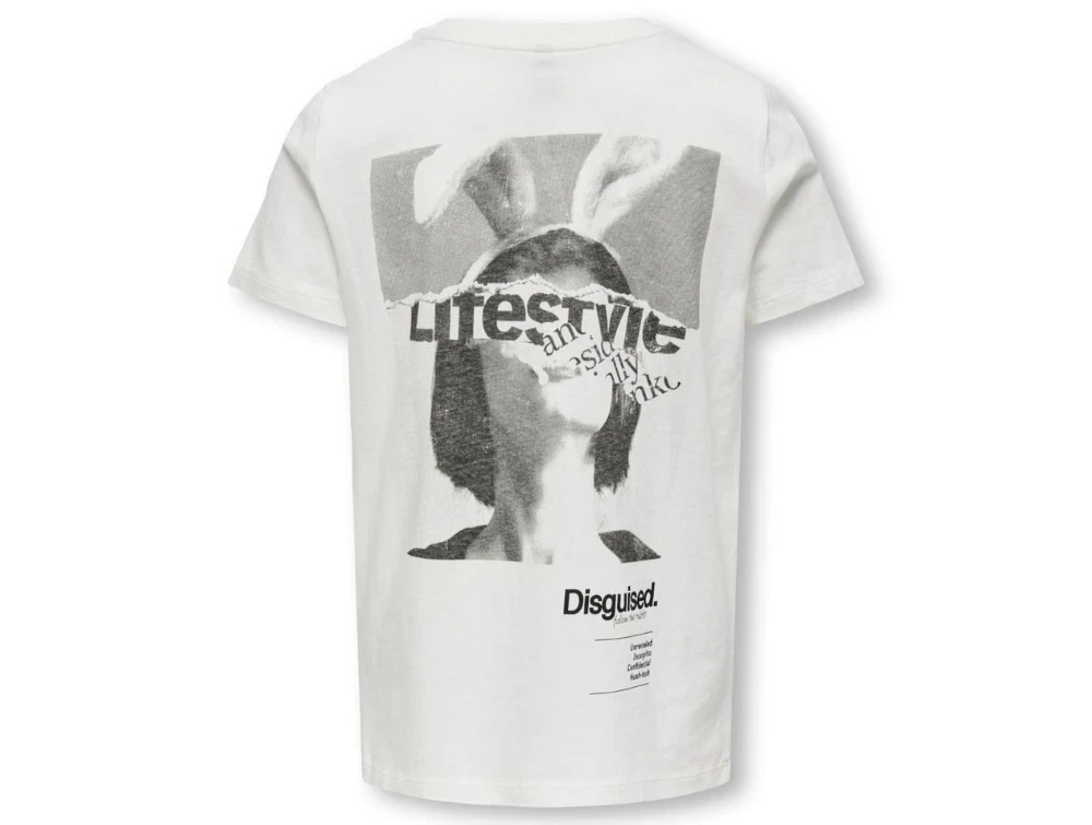 Cool t-shirt top i farven cloud dancer med disguised-print på front og ryg fra Kids ONLY.