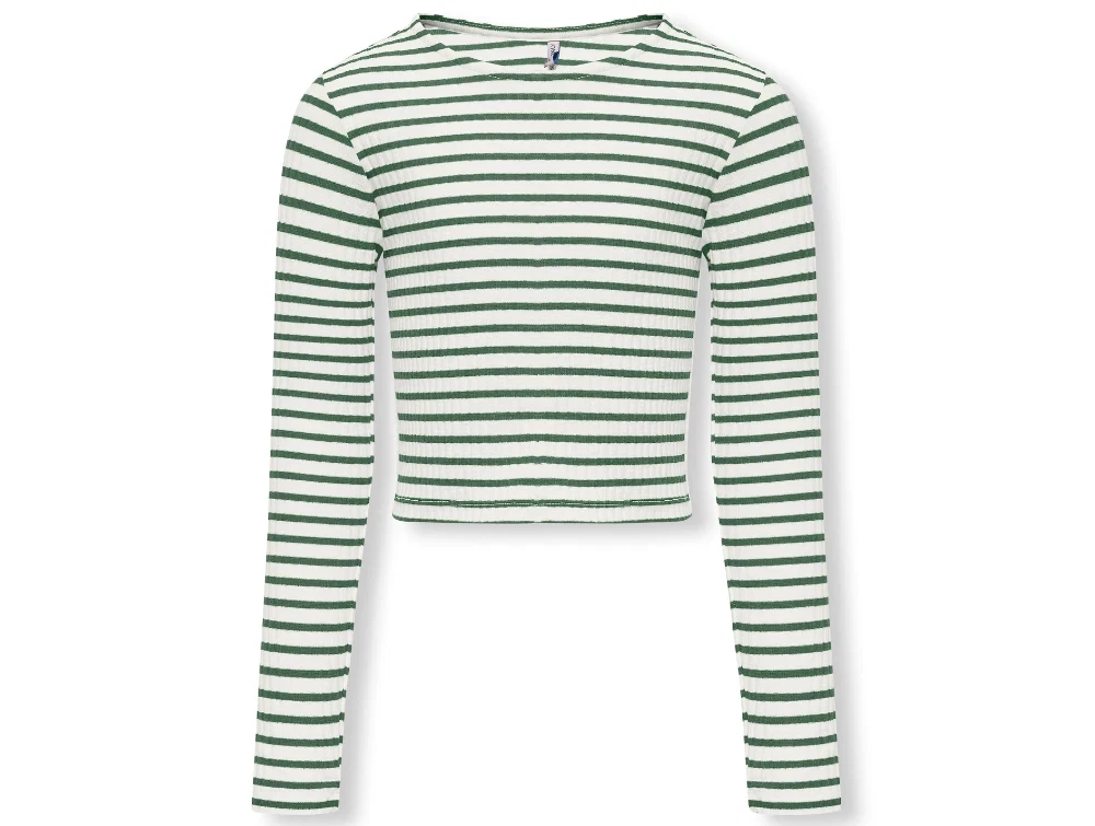 Stribet top i farverne cloud dancer og hedge green fra Kids ONLY.