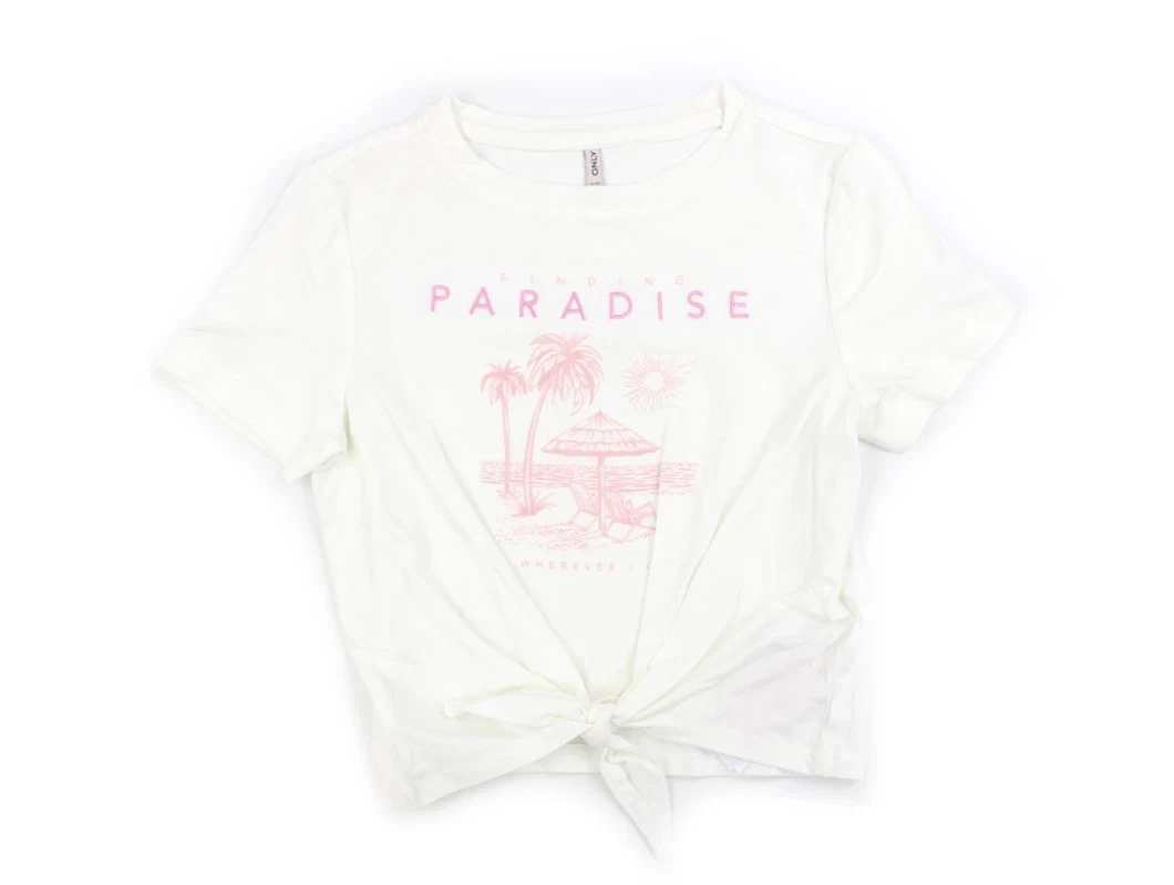 Skøn t-shirt top i farven cloud dancer med paradise-print og shiny broderi fra Kids ONLY.