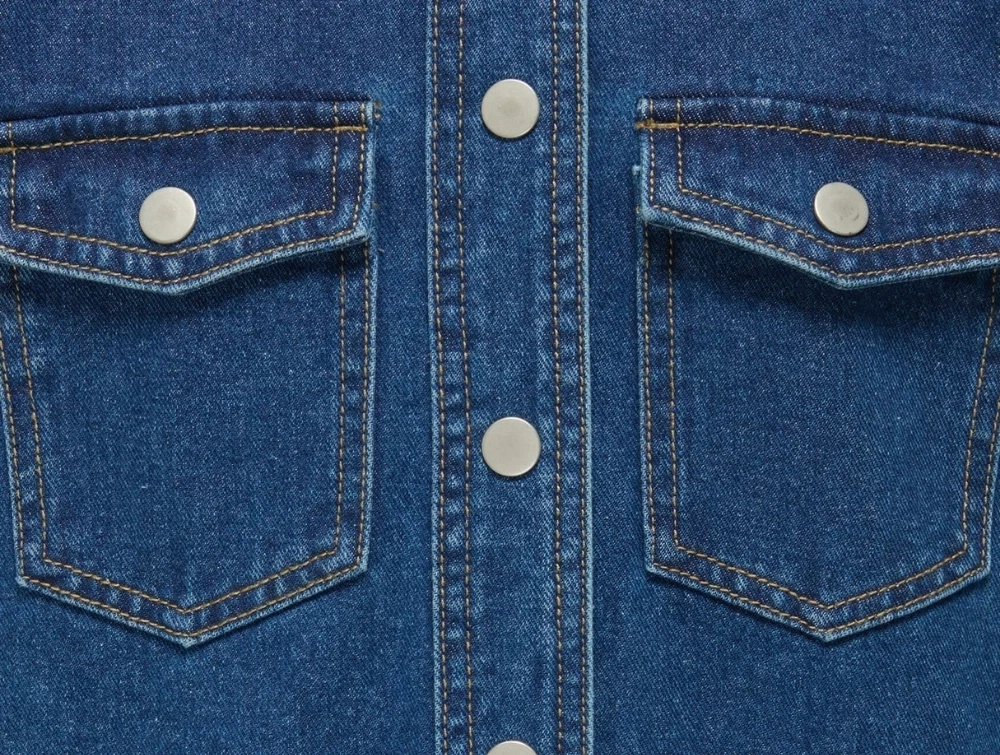Modellen har lange ærmer, to brystlommer og en løs pasform, som giver et afslappet og cool udtryk. Lavet i 100% bomuld med en let vasket overflade for et autentisk denimlook.