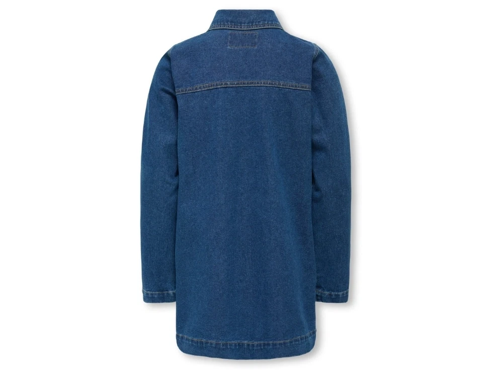Denimkjole i medium blå fra KIDS ONLY med klassisk skjortekrave og knaplukning foran.