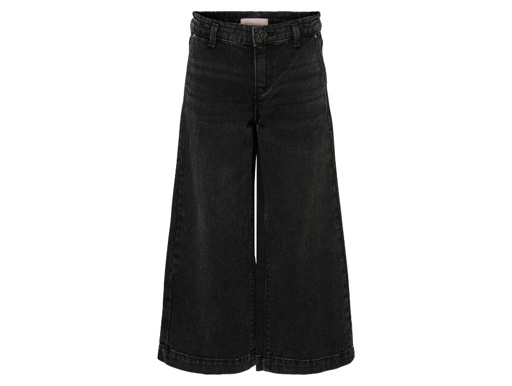 Kids ONLY wide leg jeans i washed black forfraKids ONLY wide leg jeans i washed black på modelKids ONLY wide leg jeans i washed black med justerbar knapKids ONLY wide leg jeans i washed black bagfra