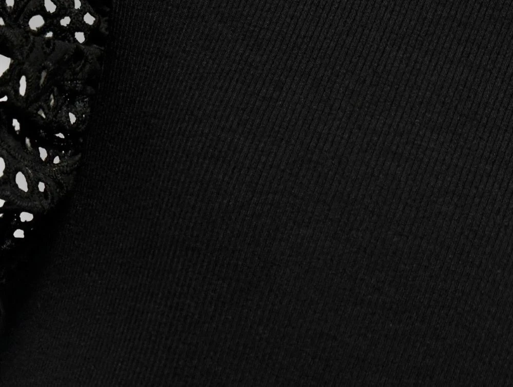 Kjole i sort fra KIDS ONLY med korte flæseærmer i broderie anglaise og ribstruktur.