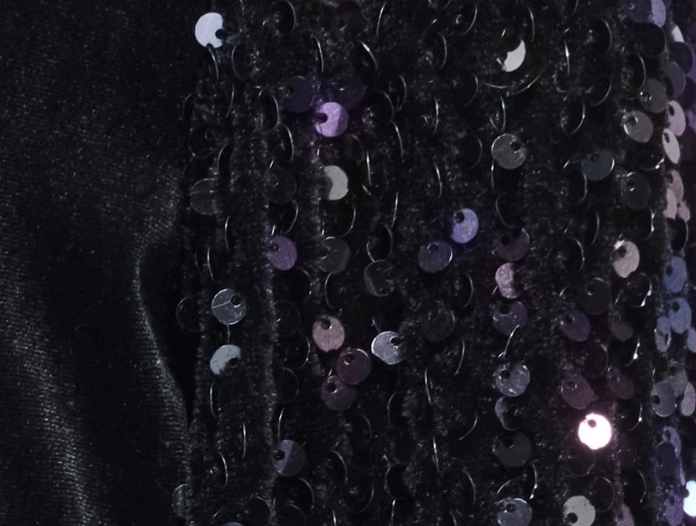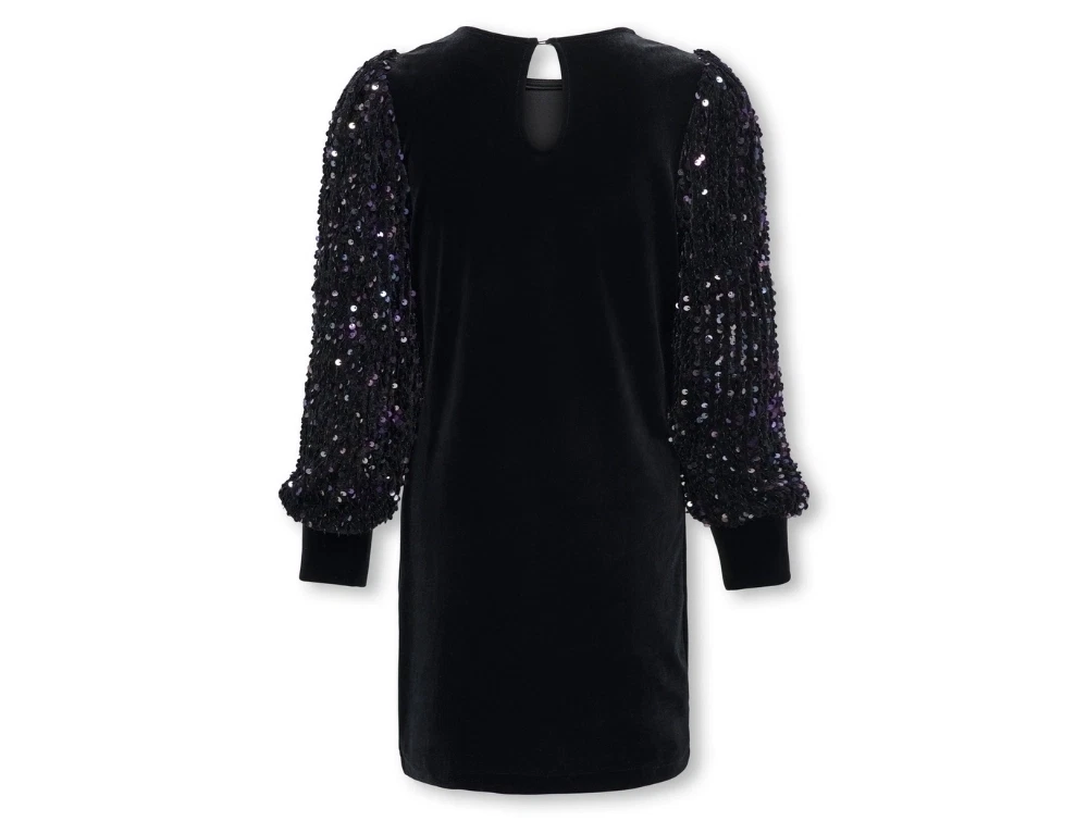 Kjole i sort velour fra kids ONLY med pailletbesatte ærmer, der giver et festligt udtryk.