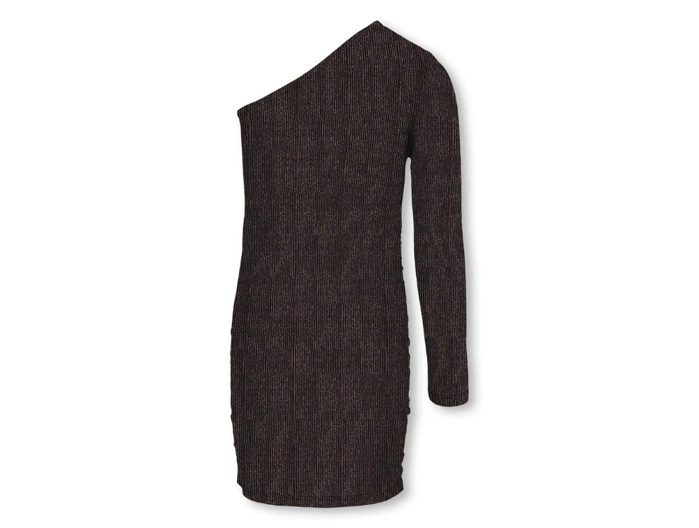 Pige iklædt KIDS ONLY kjole black lurex rose gold med én skulder til pigerKIDS ONLY kjole black lurex rose gold med én skulder til pigerPige iklædt KIDS ONLY kjole black lurex rose gold med én skulder til piger bagfraKIDS ONLY kjole black lurex rose gold med én skulder til piger bagfra