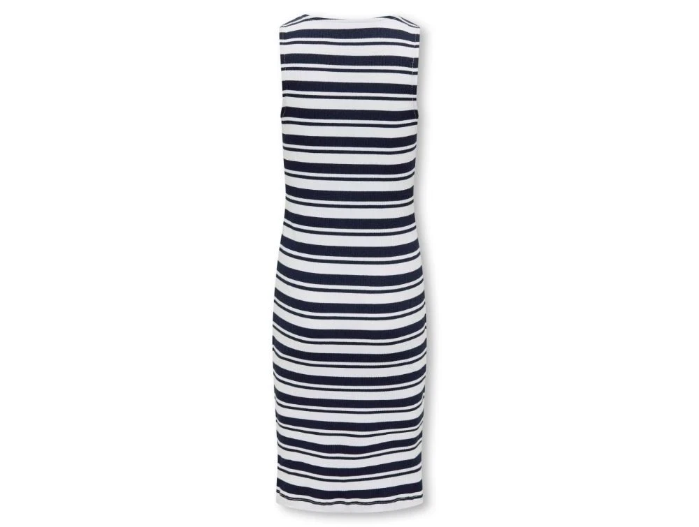 Lang kjole i mørkeblå (night sky) og hvid fra KIDS ONLY med klassiske striber og tætsiddende snit.
