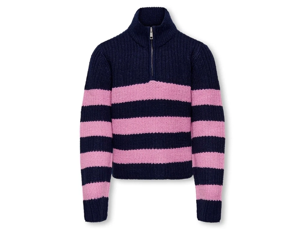 Stribet strik med lynlås i halsåbning i farverne maritime blue og moonlite mauve fra Kids ONLY.