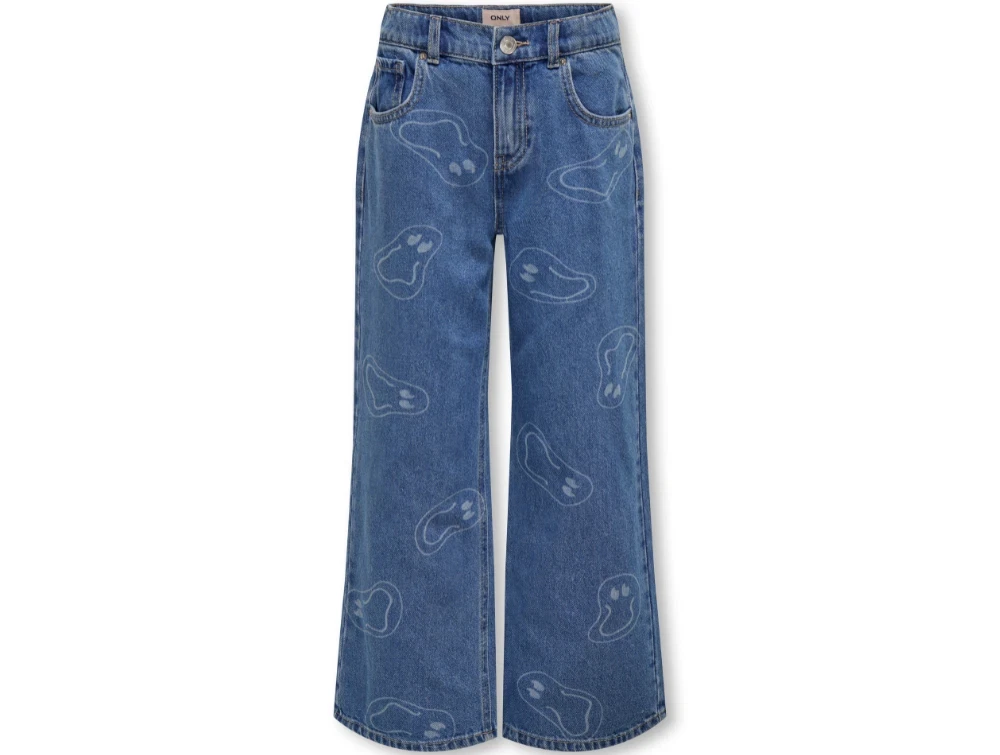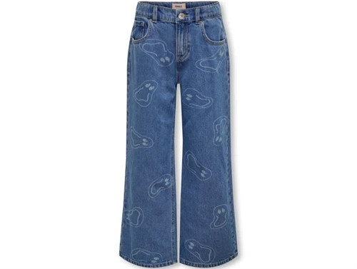 Cool brede denimbukser i farven medium blue denim med smile-print fra Kids ONLY.