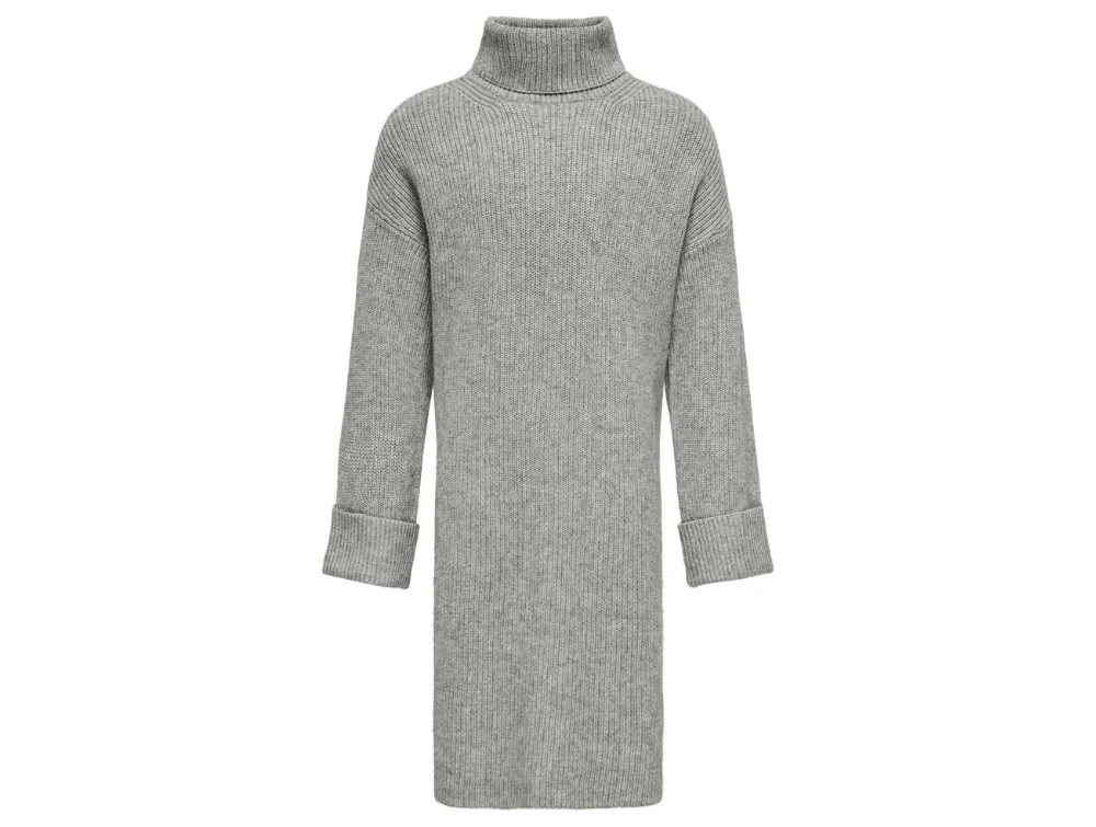 Lækker strikkjole med rullekrave i farven medium grey melange fra Kids Only.