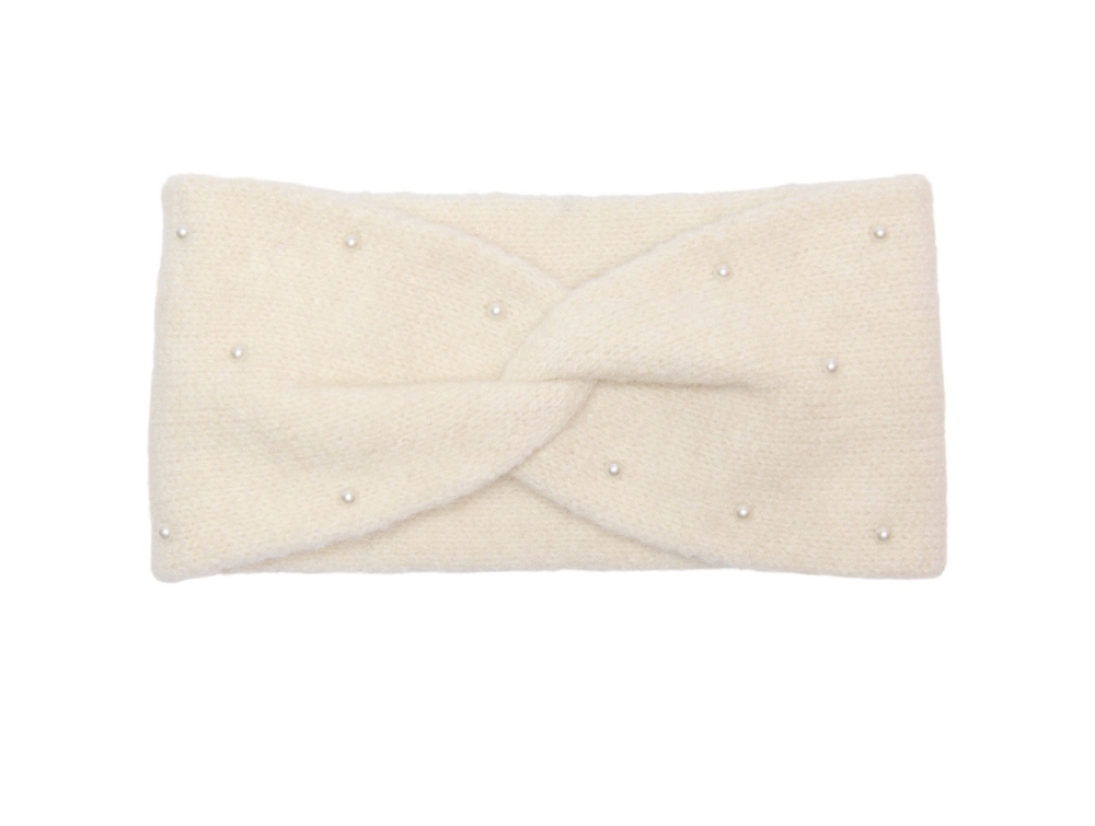 Pandebånd i råhvid nuance fra KIDS ONLY med små perler foran, der giver et feminint og elegant udtryk. Det krydsede design foran gør det behageligt at have på og giver en flot form omkring panden.