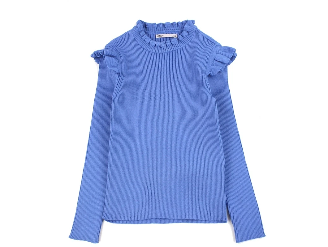 Skøn pullover i farven provence med flæsedetaljer fra Kids ONLY.