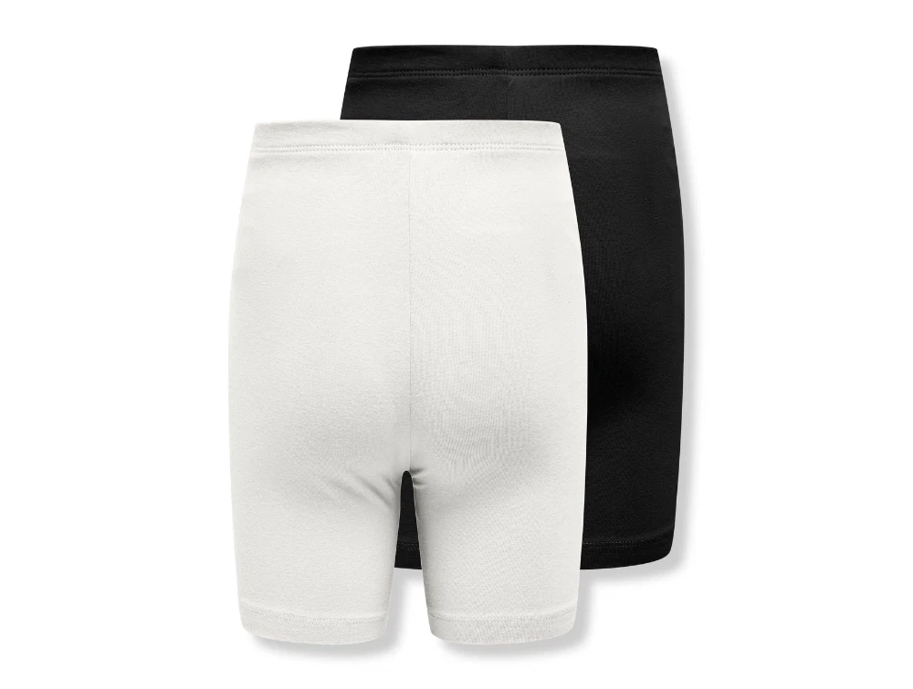 Kids ONLY shorts i sort og råhvid 2 pak med tætsiddende pasformKids ONLY shorts i sort og råhvid med elastik i taljen detaljeKids ONLY shorts i sort og råhvid set bagfra