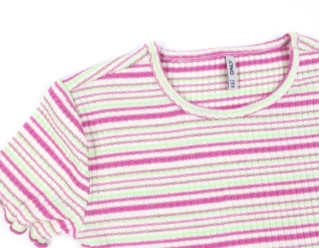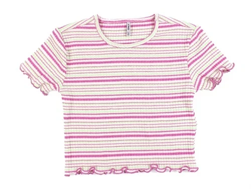 Skøn stribet kort og boxy top i ribkvalitet i farverne strawberry pink og cloud dancer fra Kids ONLY.