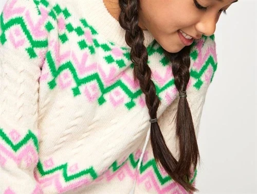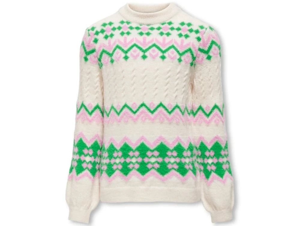 Pullover strik i farven cloud dancer med strikmønster i farverne bonbon og island fra Kids ONLY.