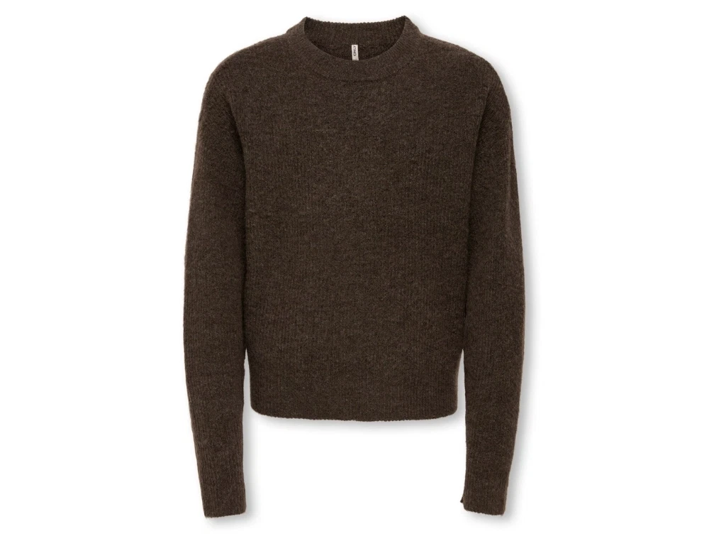 Striktrøje i mørk brun nuance (black coffee melange) fra KIDS ONLY.