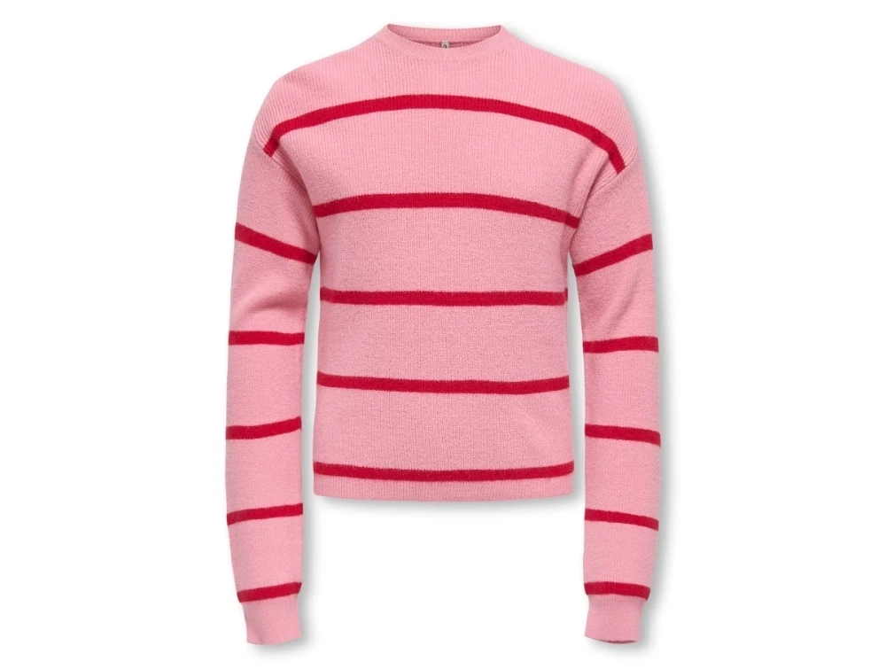 Kids ONLY striktrøje sea pink med smalle røde striber