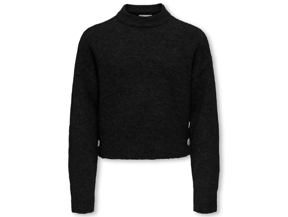 Sort striktrøje fra KIDS ONLY i blød og varm kvalitet. Modellen har høj hals, lange ærmer med sænkede skuldre og ribkanter ved ærmer og bund. En klassisk og alsidig style, der passer til både hverdag og pænt brug.