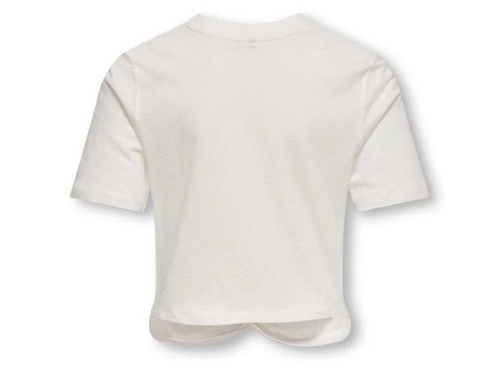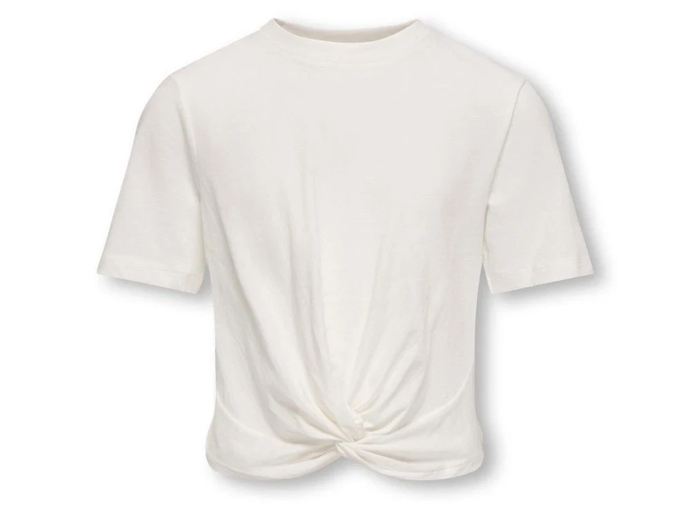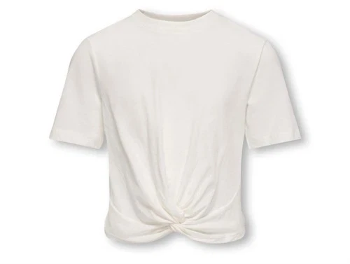 Hvid t-shirt fra Kids ONLY med dekorativ twistdetalje foran og en enkel, moderne silhuet.