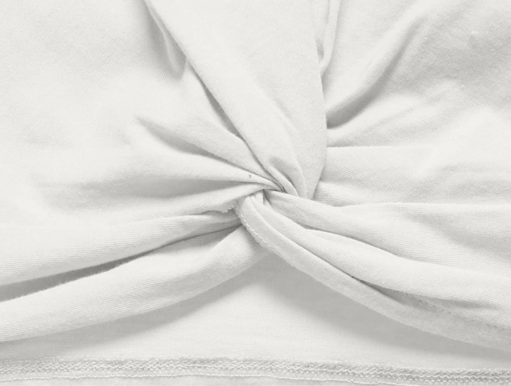 hvid t-shirt fra kids only med twistdetalje foran og rund halsbagside af hvid t-shirt fra kids only med almindelig pasform og korte ærmernærbillede af knudeeffekt på fronten af hvid t-shirt fra kids only