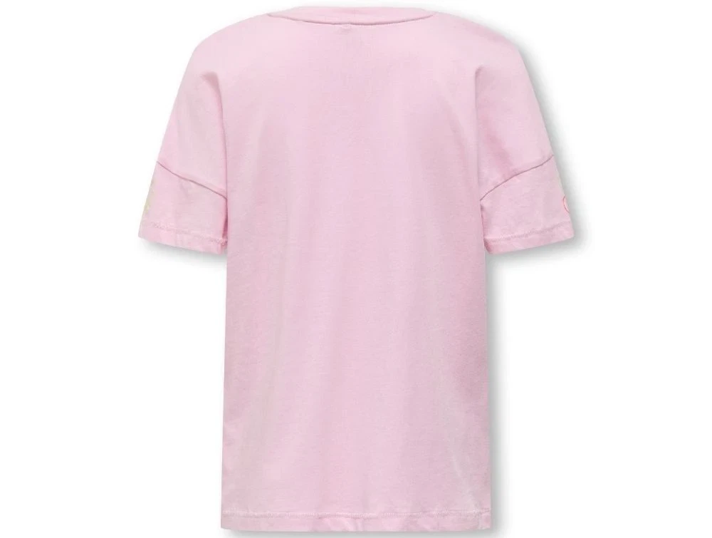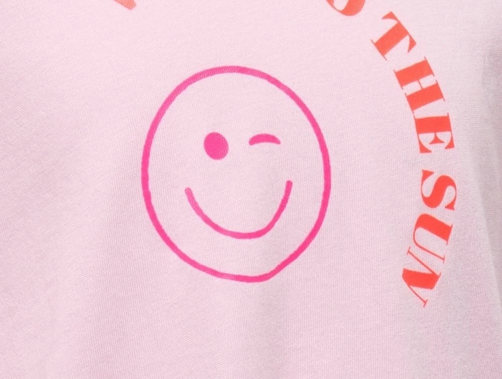 Lyserød t-shirt fra Kids ONLY med stort smiley print foran.