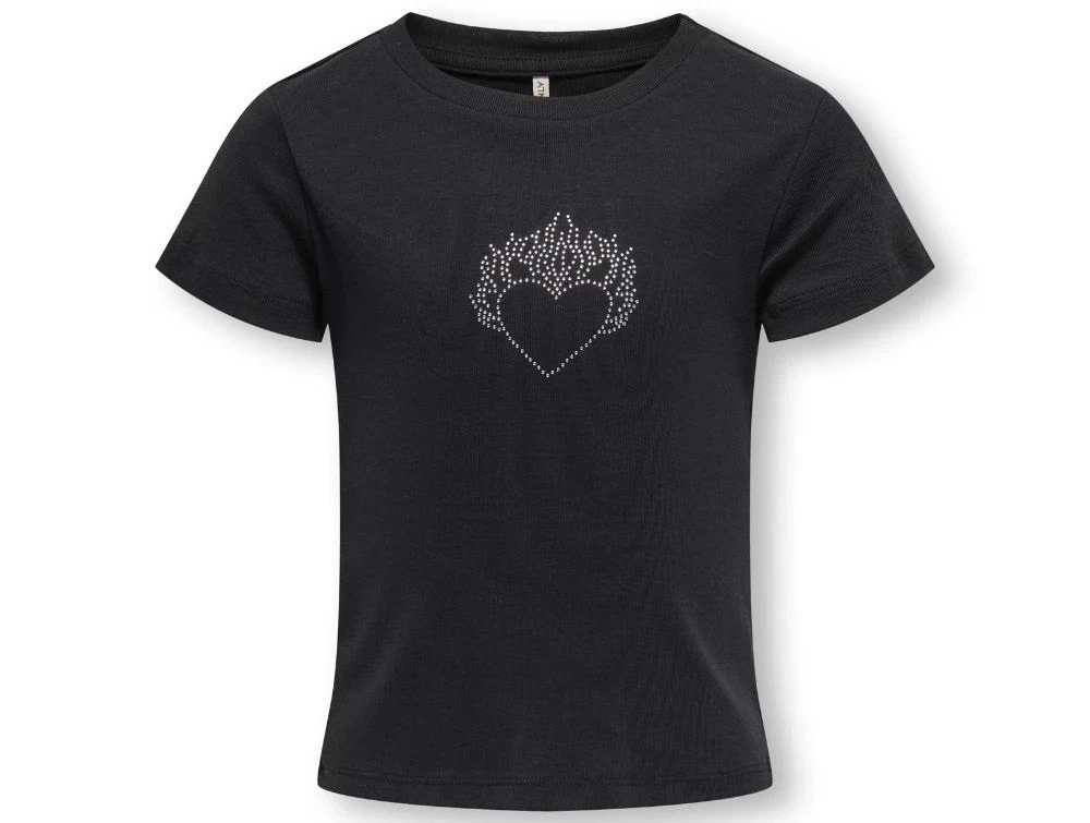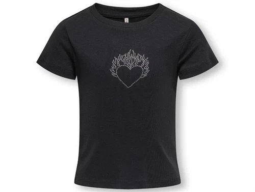 Sort t-shirt fra Kids ONLY med glitrende hjerte i similisten foran.