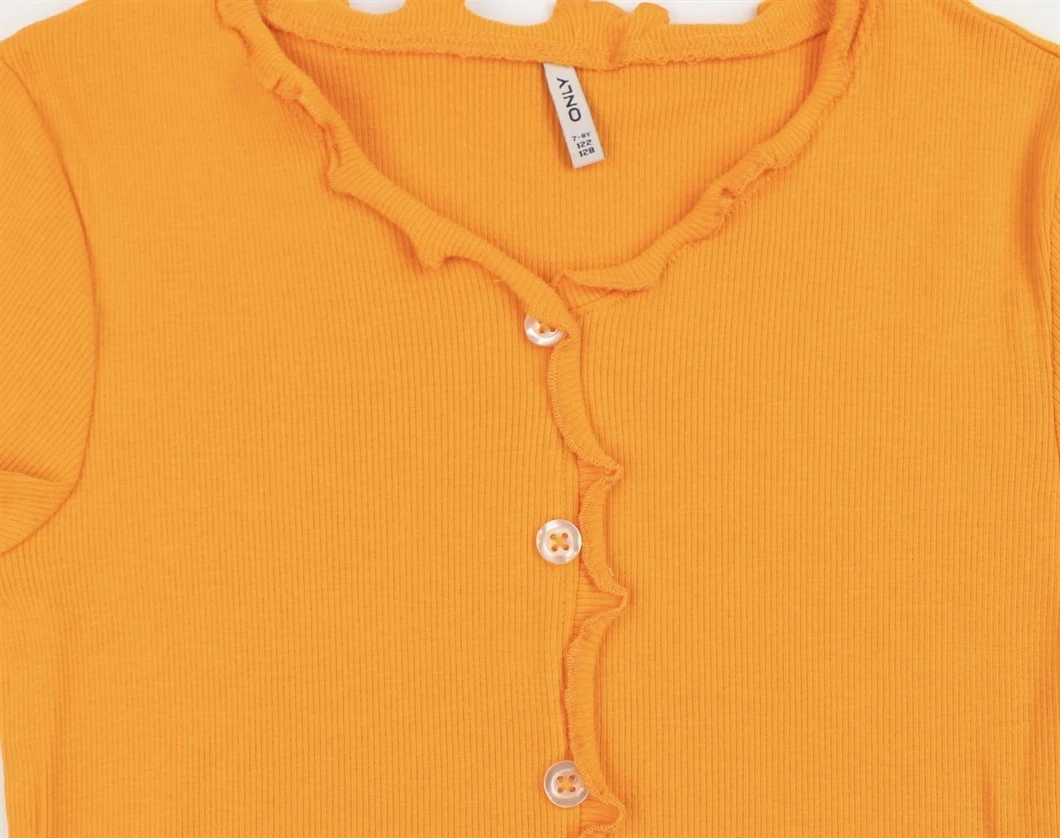 Skøn top i ribkvalitet i farven tangelo med pynteknapper fra Kids ONLY.