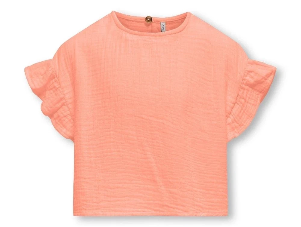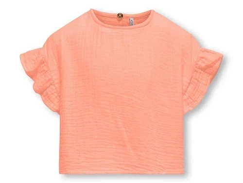 Laksefarvet top fra Kids ONLY i blød musselin af bomuld (økologisk).