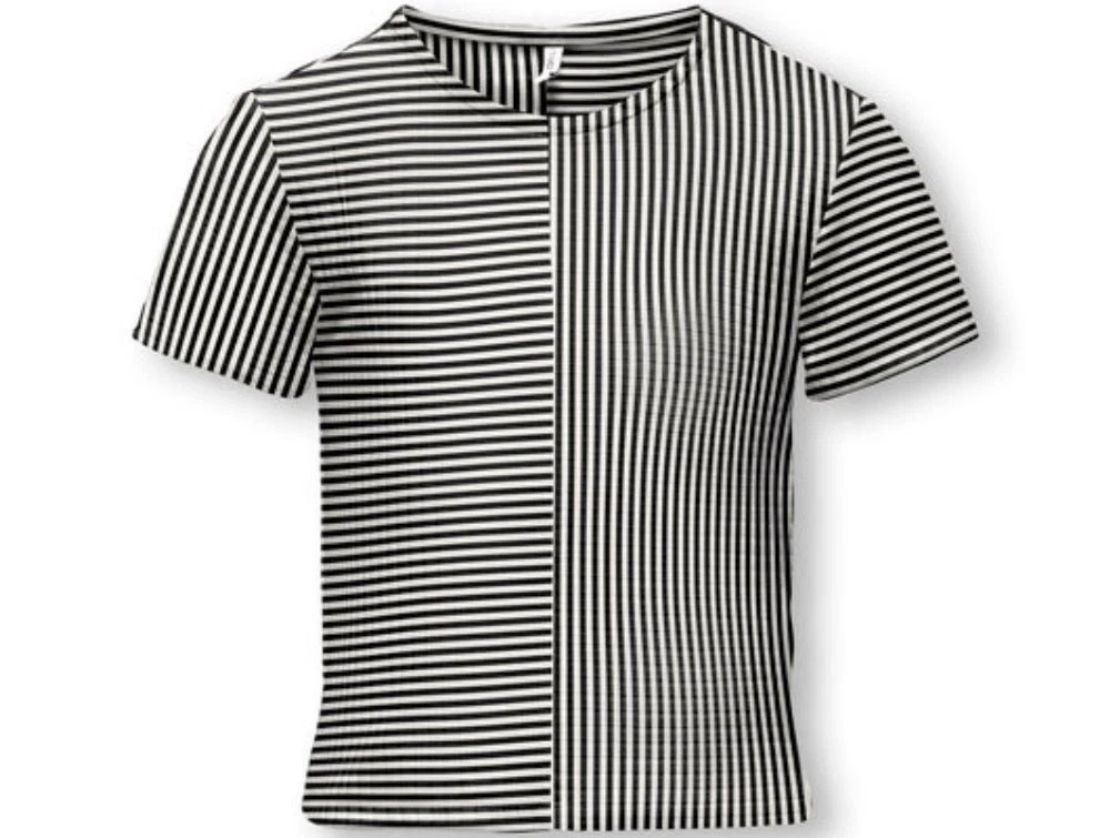 Mere information om Kids ONLY top sort/cloud dancer stribet
