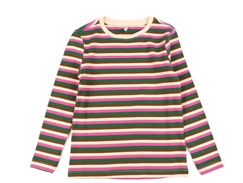 Stribet bluse i farverne tropical peach og fuchsia rose fra Kids ONLY.