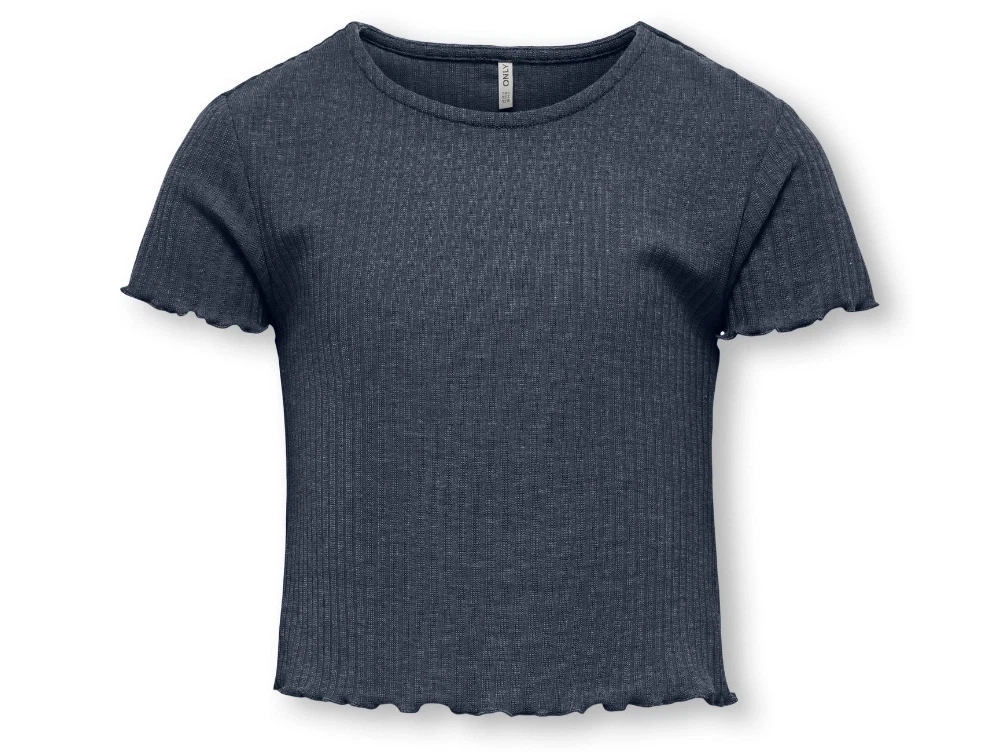 Kids ONLY t-shirt i blå nuance med korte ærmer og flæsedetaljer